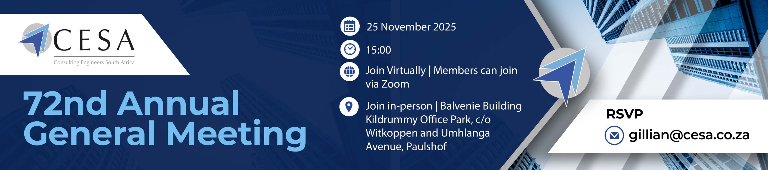 It has been brought to our attention that Members are being approached by Africa Advertising with the subject line “CONSULTING ENGINEERS SOUTH AFRICA DATABASE SERVICES”. This is totally misleading as CESA has not outsourced the CESA database to Africa Advertising with which it has no affiliation. CESA has not mandated Africa Advertising to approach CESA Members and will be taking the matter further. We urge members to refrain from engaging with them or committing to any of their advertising proposals.