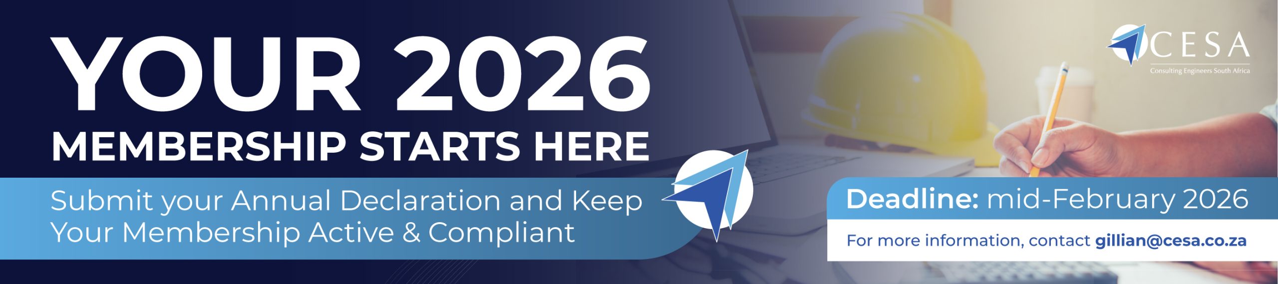 It has been brought to our attention that Members are being approached by Africa Advertising with the subject line “CONSULTING ENGINEERS SOUTH AFRICA DATABASE SERVICES”. This is totally misleading as CESA has not outsourced the CESA database to Africa Advertising with which it has no affiliation. CESA has not mandated Africa Advertising to approach CESA Members and will be taking the matter further. We urge members to refrain from engaging with them or committing to any of their advertising proposals.