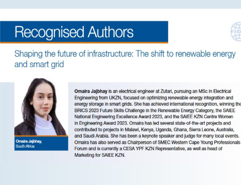 Before the main event Uzair participated in the Future Leaders’ Conference, a session for emerging industry leaders. Congratulations to Omaira Jajbhay and Uzair Osman, whose papers were published in the Future leaders’ Conference Journal. It can be accessed here: https://issuu.com/fidic/docs/future_leaders_2024_-_sustainability_final/29
